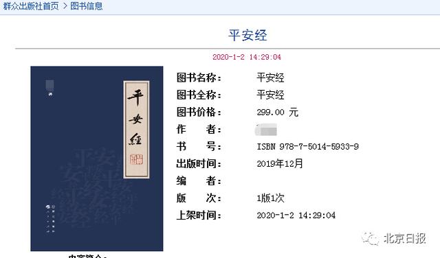 3 `" x* P( V- |7 o( Q) [: H. g! ]6 j#群众出版社承认《平安经》出版方#) p: W: S( d) f, m/ T1 }' W$ Q7 }