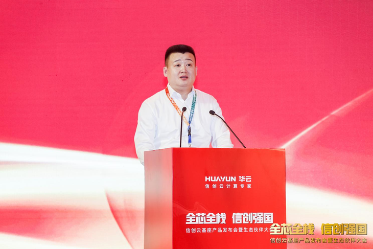 (华云数据产品技术中心高级副总裁郭晓解读"信创云基座") 从架构方面来看,信创云基座基于华云数据自研的国产混合IT架构云化解决方案,包括数据中心云化和桌面云化产品。整体采用微服务架构,向下兼容主流国产处理器、服务器硬件,支持开通基于主流国产操作系统的裸金属、虚拟机和容器等类型云资源,利用华云信创基地群全生态适配与攻关能力,可以为各行各业提供基于信创云基座的行业信创云解决方案。 信创云基座是一个支持全芯全栈云计算解决方案,可以适配国产化芯片,致力于构建完备的信创生态。从IaaS、PaaS到SaaS,信创云基座涵盖了丰富的产品线;从云的使用形态上看,信创云基座支持包括虚拟化、超融合、私有云、混合云、桌面云、专属云在内的各种形态。同时,信创云基座作为承上启下的云平台,具有广泛的硬件兼容性,具有优秀的生态整合能力,网络安全、数据保护、人工智能等生态产品已经陆续整合到云基座产品中。 发布会现场,龙芯、飞腾、兆芯、麒麟、统信等六大自主芯片和两大自主操作系统厂商参与了“全芯全栈”共建信创云基座仪式,认证了信创云基座的适配能力,并将与华云数据持续进行深入合作,充分发挥各方优势,基于信创云基座打造联合解决方案,为用户提供安全可靠、快速便捷、业务承载丰富的信息化服务。