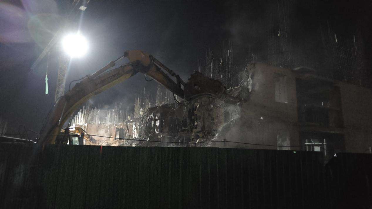 在第一时间,我们积极与有关领导协商沟通:该工程属于合法项目,持有合法手续,非占用基本农田的违法行为。依照《行政强制法》《行政诉讼法》《城乡规划法》《行政处罚法》等有关法规,如须强拆工程,需要履行法律程序。但镇执法队长刘某只回复一句话;“我们什么法律程序也没有,只奉马书记的命令”。结果,刘队长带领综合执法队将该工程三天内暴风骤雨般的全部强行拆除,一片狼藉!在强拆时,我们质问刘队长:既然是区委的命令,为何没有执法文书?也没有工作人员参与?刘队长只有一句话:“无可奉告”。我们敢怒不敢言,只能尽力做好农民工和前期购房群众的安抚工作。2 l$ M$ E; T& q5 u+ s( p0 Q) O+ W