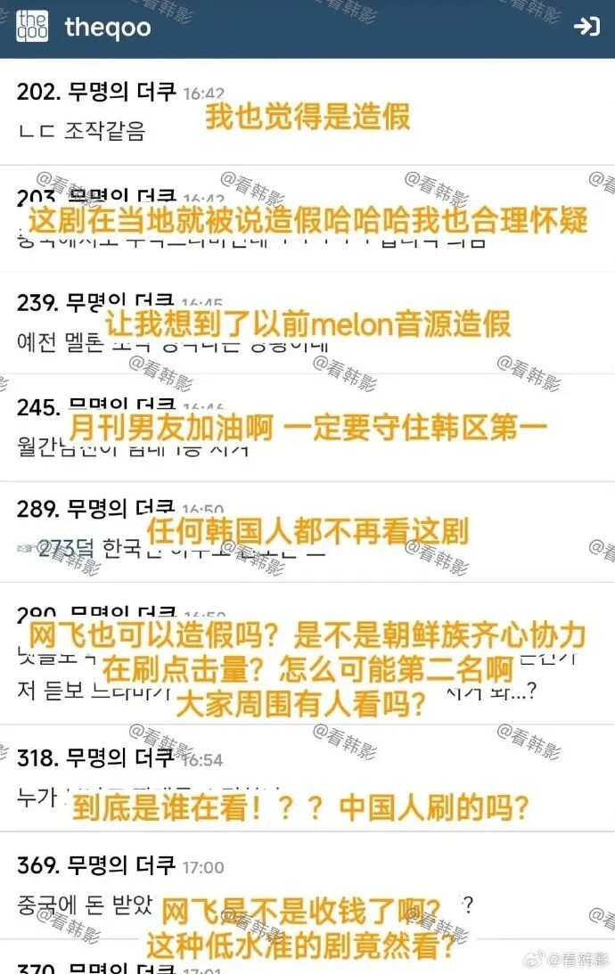 d2 j- \+ O: _% {! F# V- N韩国论坛上,也有很多人疑惑不知道怎么它就冲上了网飞榜单,明明没看过。