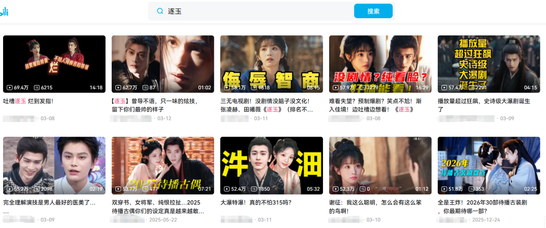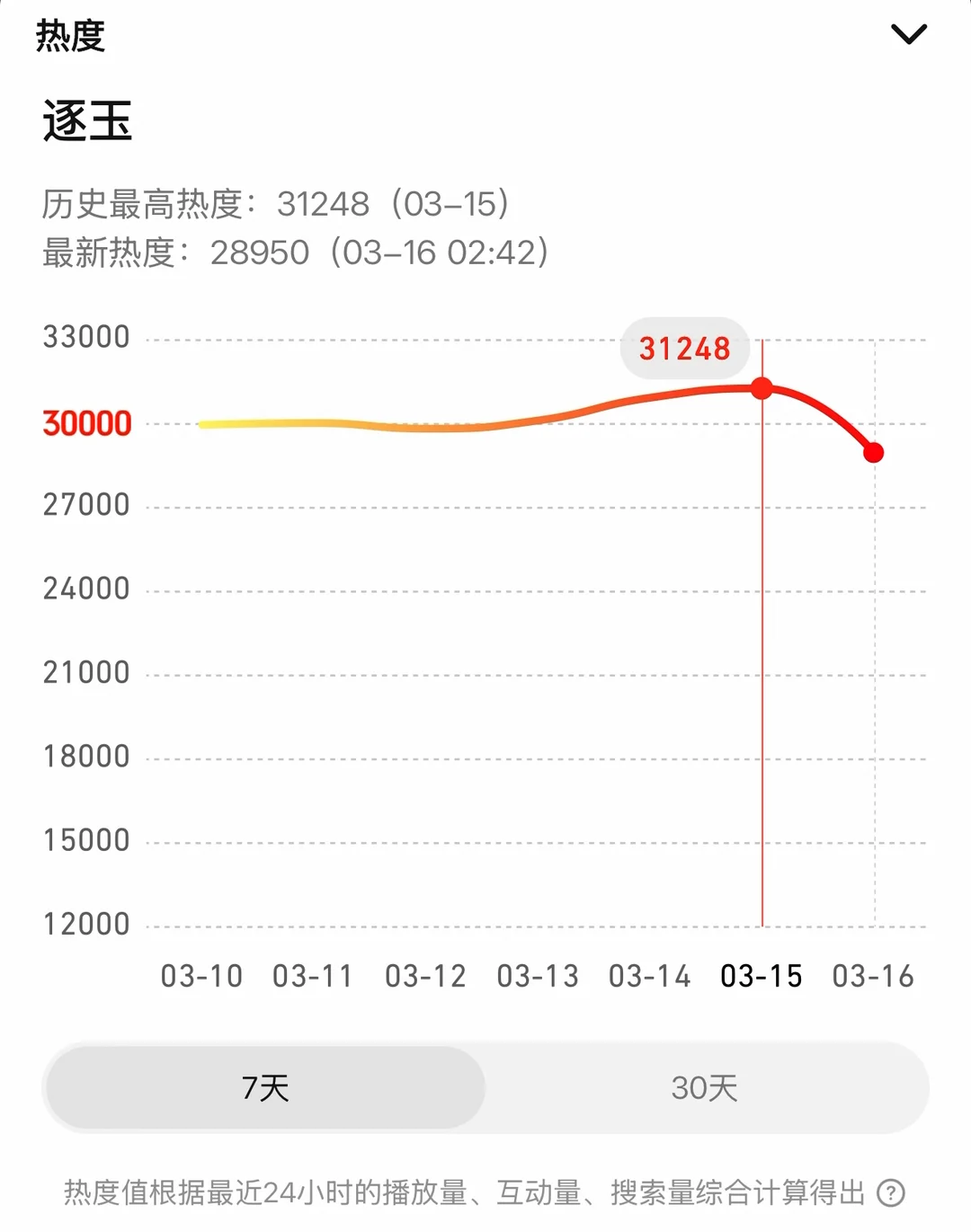 / x6 h; N2 `5 _* Y( V但现在在社交平台上进行搜索,和逐玉关联最紧密的不是二创、切片、名场面,而是“热度破万”、“拉新第一”之类的的数据截图,是“数据有没有注水”的争议。 ; ^' X5 m! j+ N: ]; Q: o