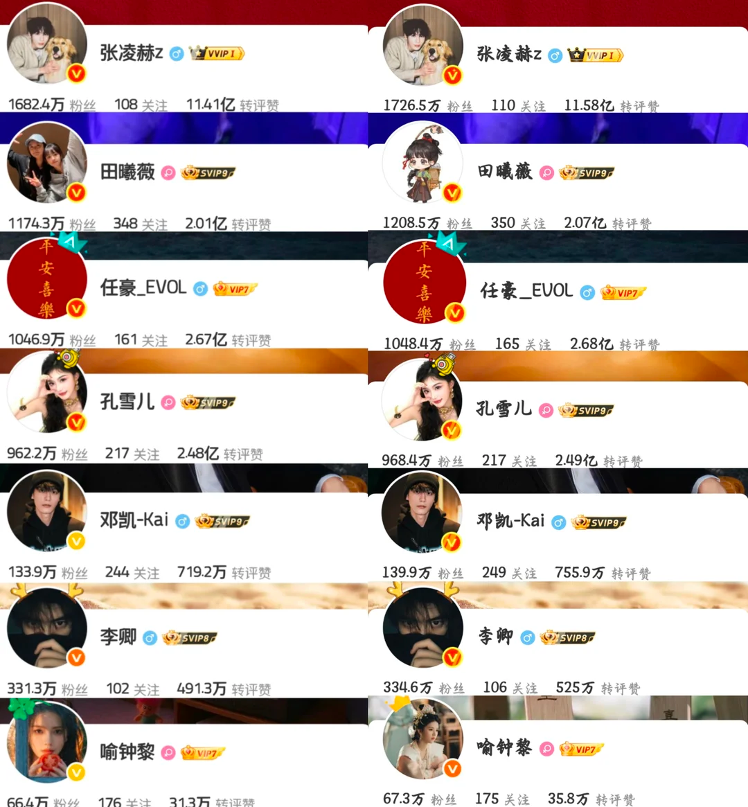 除此之外,还有人统计过开播后参演演员的涨粉量,发现没有特别大的加成。