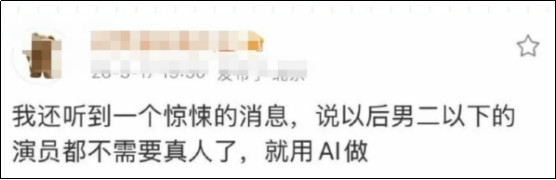 联想到最近看到的消息,说有制作方考虑以后除了男主和女主的其它演员都直接用AI了。